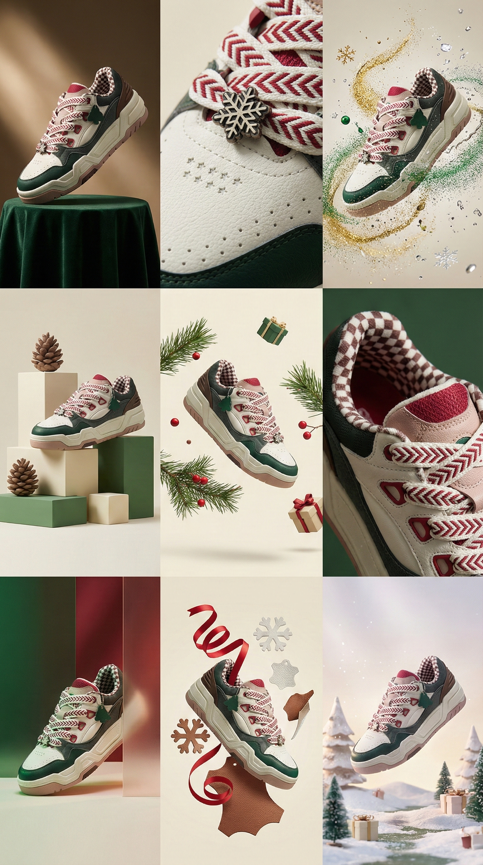 操作: 浏览不同风格的商拍案例(如:3D渲染、写实摄影、日系插画)。